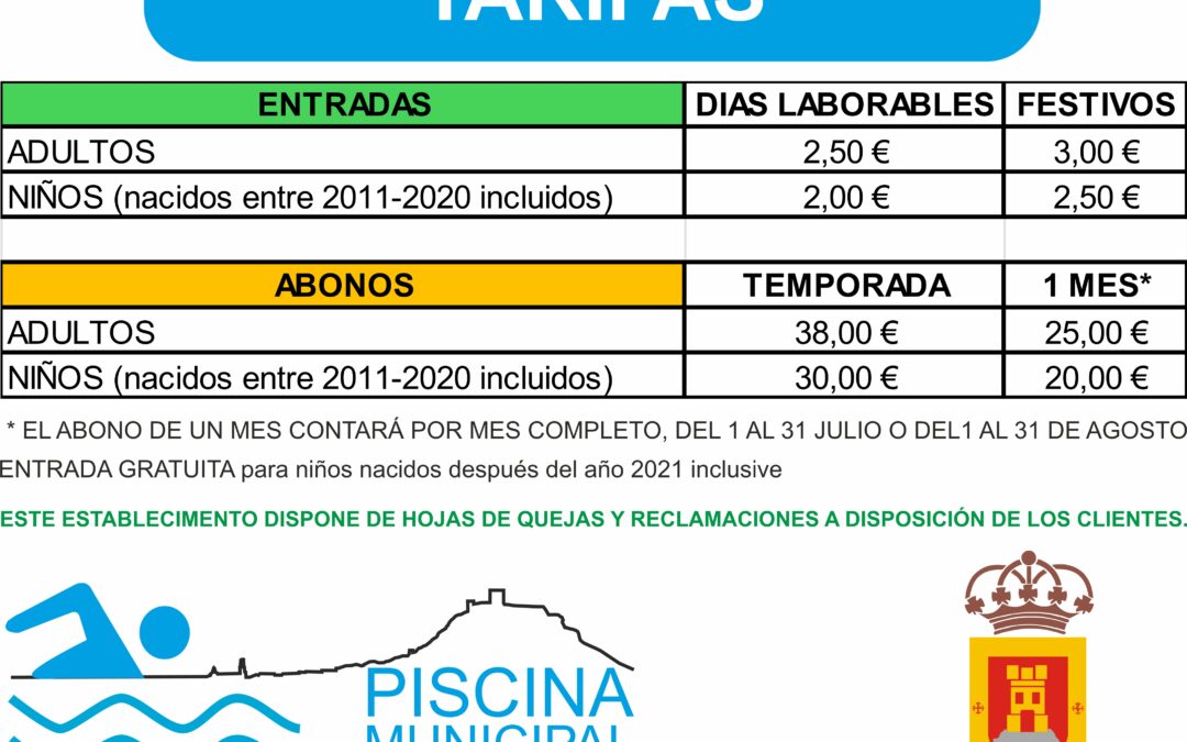 Estas son las tarifas de la piscina para la temporada de baño de 2.025, aprobadas por el pleno de la corporación municipal en sesión celebrada el 30 de diciembre de 2.024
